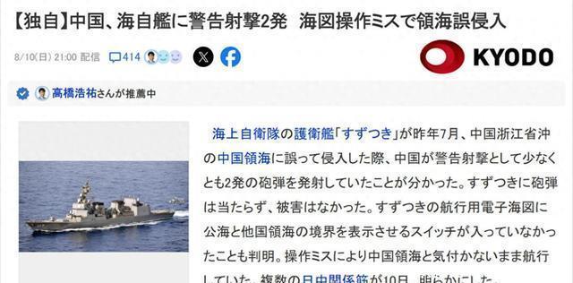 近些年,日本的狼子野心,可谓是昭然若知! 此前,日本“凉月号”驱逐舰擅闯中国领海后,曾经被中国海军多次警告加两次炮击警告,待了20分钟后才离开。
